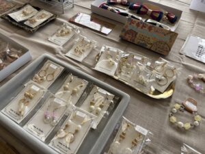 「かわいいね!」「どれにしようかな」と、たくさんの方が足を止めてくださり、アクセサリーを手に取って楽しそうに選んでいる姿に、私たちも自然と笑みがこぼれます。地域の方々と直接お話ししながら作品をお届けできる時間は、作り手にとって何よりの喜びです。